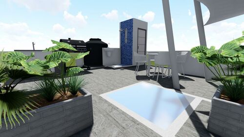 area. Rooftop solarium with jacuzzi, room with massage chair.
