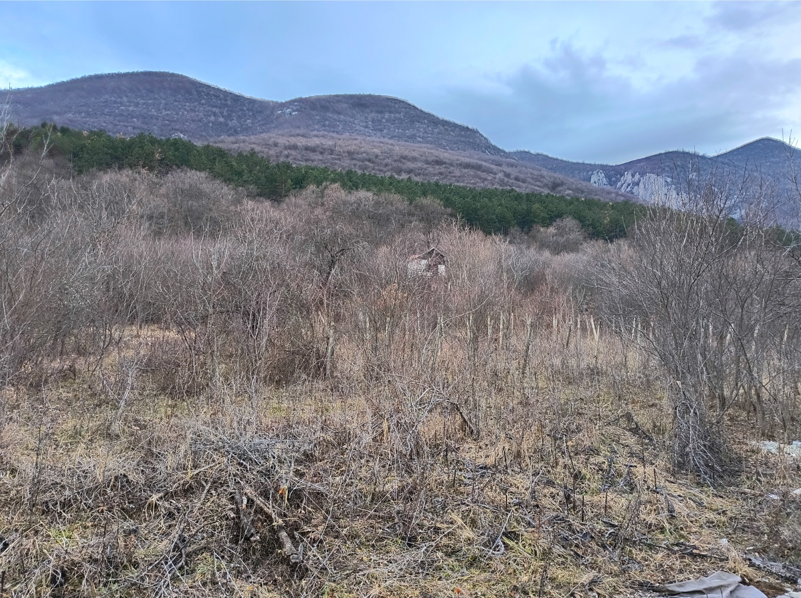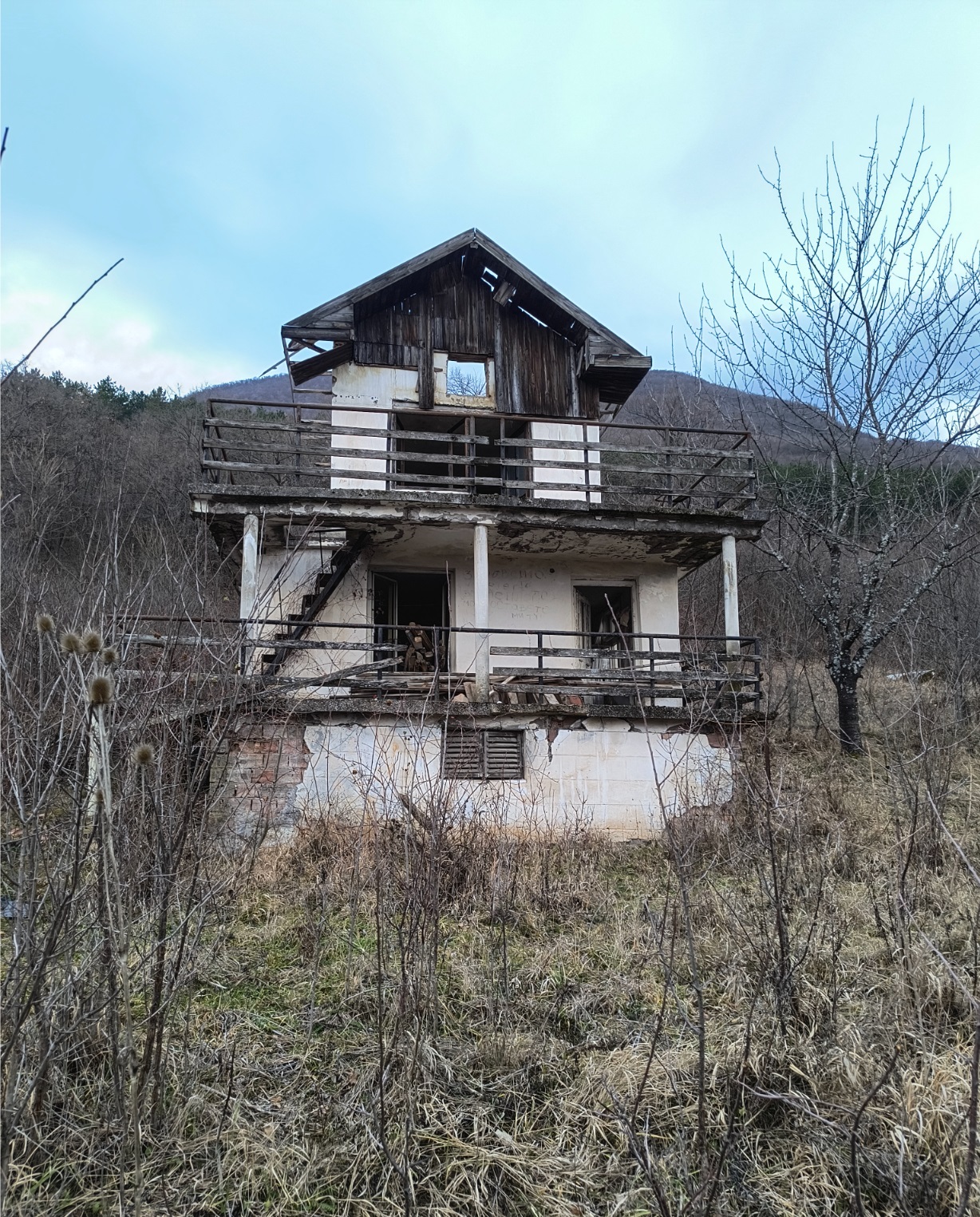 Old villa with big plot of land and nice views situated in the mountains 10 km away from Vratsa, Bulgaria. The villa has two floors. The ground level holds big terrace with panoramic views and two rooms which were used as living room and kitchen. Over the external stairs one can go to the second floor where one spacious bedroom and another terrace can be reached. There is also a storage room beneath the ground floor. Not far away from the villa one can find a small bungalow with one room. The plot of land that comes with the villa offers a great amount of space which used to have vineyard and fruit trees in the past but now is very overgrown and needs a good cleanup. The villa is currently in bad condition and requires repairs. The property has its own water source – a fresh water well. Due to its location, the villa does not have electricity but a solar electrical system can be installed in order to provide sufficient supply of electricity for the place. The property is about two miles away from paved road and about 5-6 miles away from the City of Vratsa. The surrounding area is very peaceful and scenic. From here one can admire views towards the near mountain range, the trees and meadows in vicinity or the panorama of the whole valley. The nearby city of Vratsa is the regional center for the area and offers many shops and stores, restaurants & bars, disco, theater, cinema, big library, schools and kindergartens, regional hospital, administrative services, police station, fire station, many gas stations, coffee shops, car service stations, furniture stores, shops for tools, clothes, electrical appliances, pharmacies, dental services, etc. There is also a historical museum, several hotels, motel, gyms, bus and train station with direct connections to the national capital city Sofia and many other parts of Bulgaria. The vicinity of Vratsa offers several famous tourist sites such as ski track, national park, big cave, lake, historical monuments, etc. Cheap property with nice views and vast yard situated within easy reach to big city and modern day living.