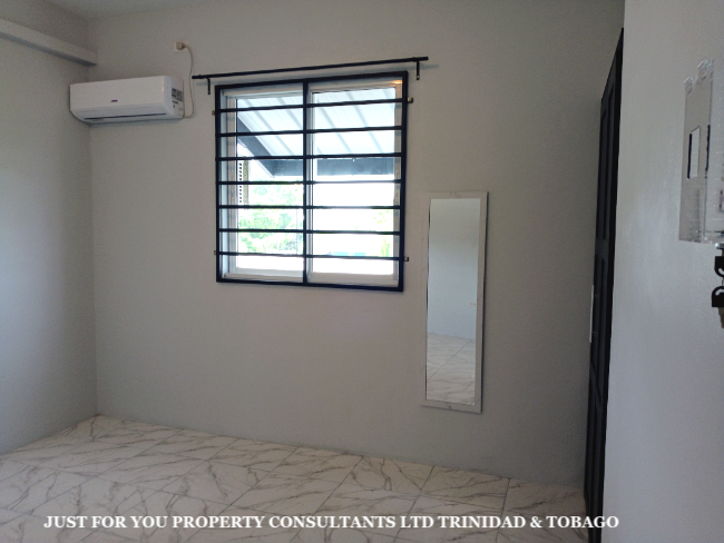 TT$4000 This welcoming brand new 2 BR 1 bath upper floor apartment is conveniently located in a serene neighborhood in Chaguanas Trinidad. It contains a spacious open living, dining & kitchen layout; is tiled throughout; has gypsum ceiling with down- lighters; possess A.C in both BRs; has sufficient built in closets; an indoor laundry area, secure parking, adequate water storage facilities, motorized gates & perimeter fencing; this unit is easily accessible & is less than 3 mins away from the highway/ all major roadways (Price includes wifi)