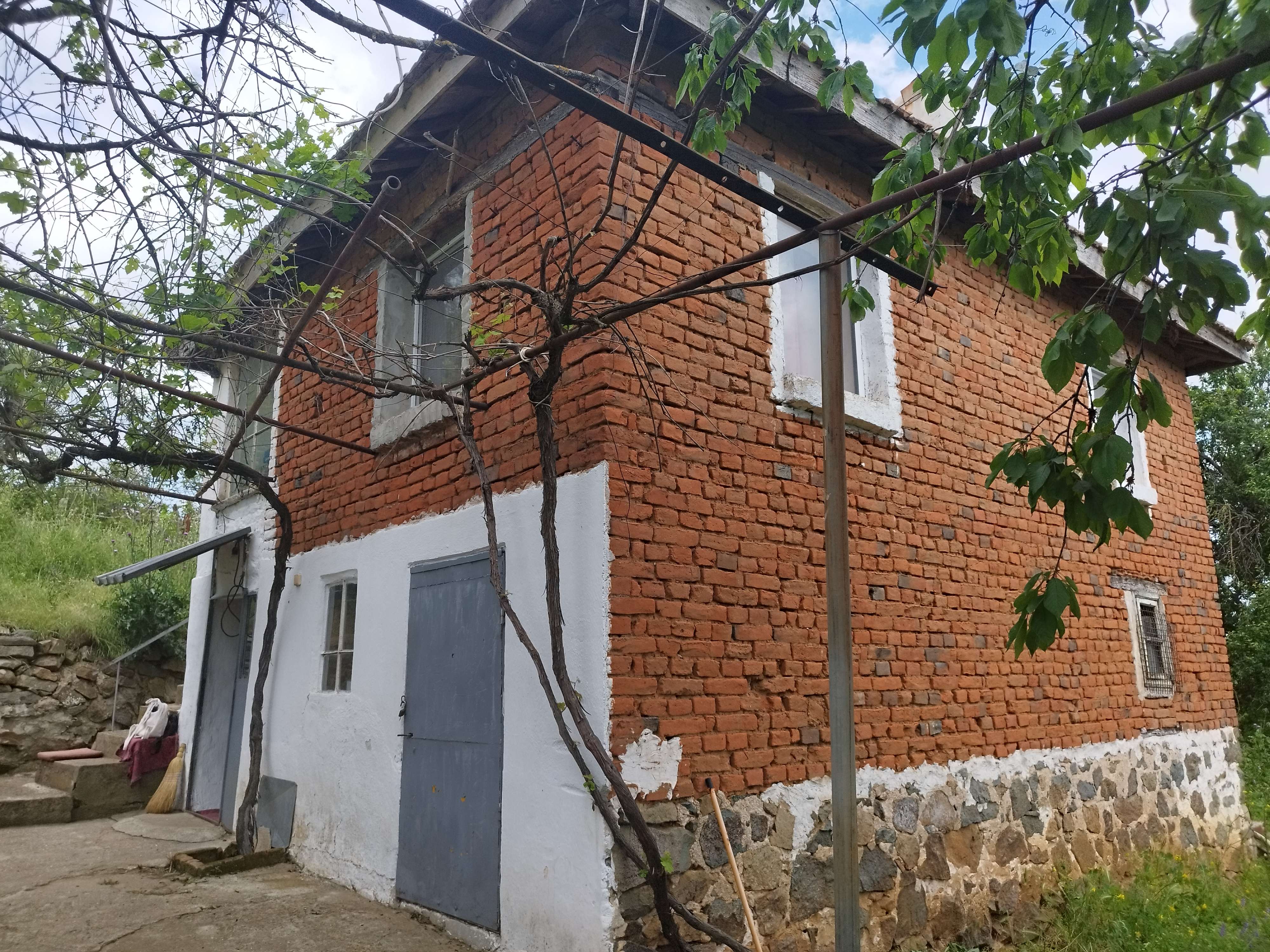 The house is massive and stable, built of stone and brick. There are no external cracks. The roof has no leaks or other problems. There is a septic tank. The windows on the second floor have been replaced with PVC.
