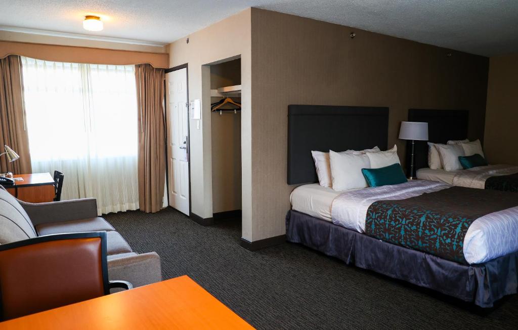Guest Rooms with Free Wi-Fi, A Flat Screen LED TV with Premium HD Channels, Mini Fridge, in-room Coffee Maker, Iron, Iron Board, Hair Dryer and a Private Bathroom with Free Toiletries are provided in each guest room. Whether you're traveling Solo, with Family, or for Business, we have the perfect room to suit your needs.