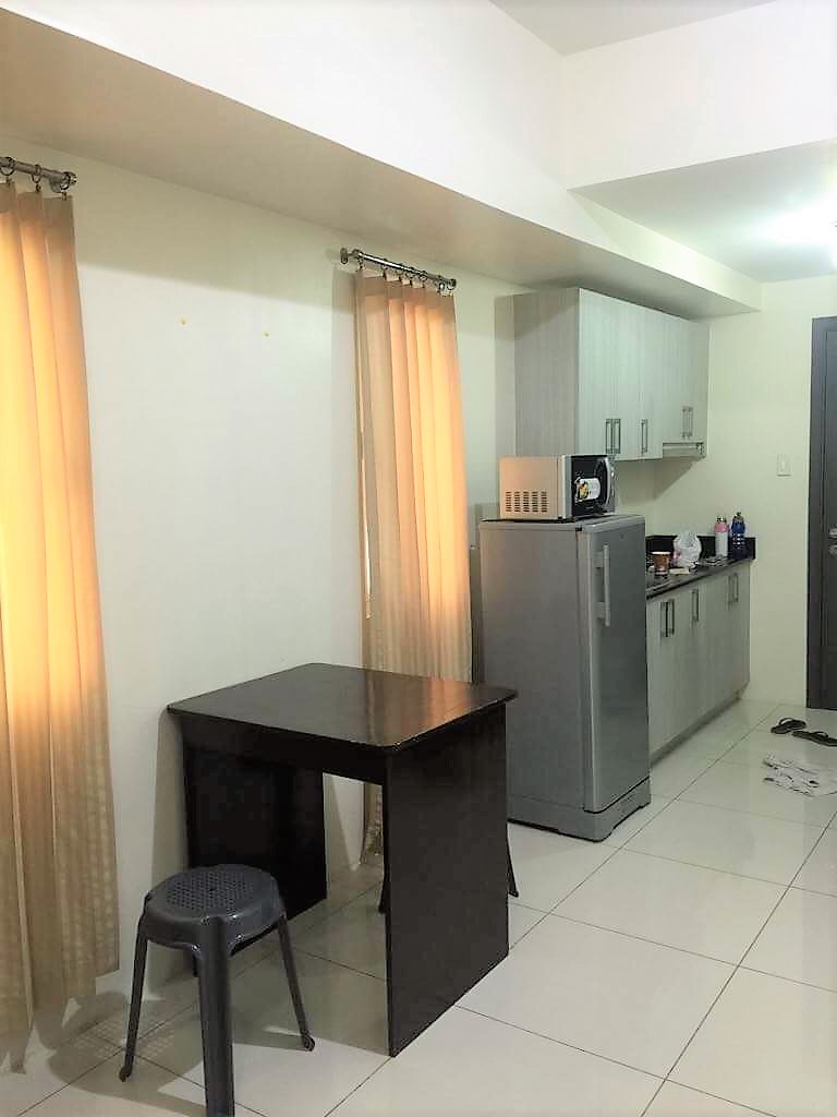 Corner Studio Unit with Balcony overlooking Manila Bay. Floor Area: 35 sqm.Fully Furnished with refrigerator, microwave oven, electric stove, kitchen utensils, shower heater, split type aircon. What is not provided are beds and mattresses. We can furnish bed and sheets according to the requirement of renter.