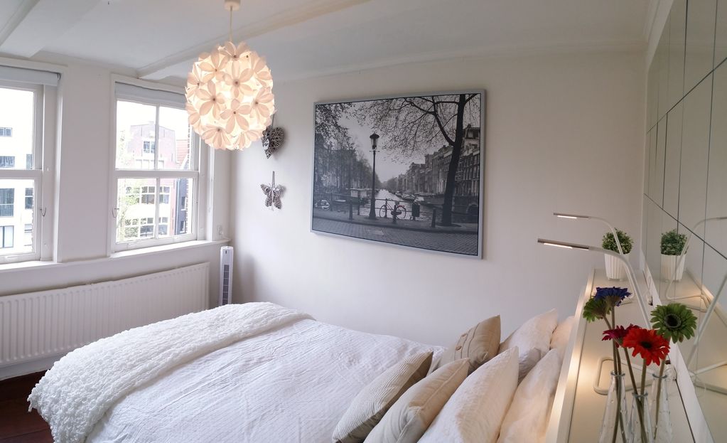 This is Amsterdam at it's best! Sunny, stylish and slap bang in the middle of everything. Walking distance from museums, art galleries and Rembrandt Plein. 600m from Centraal Station. Corner flat with canal views from every room and every window!
