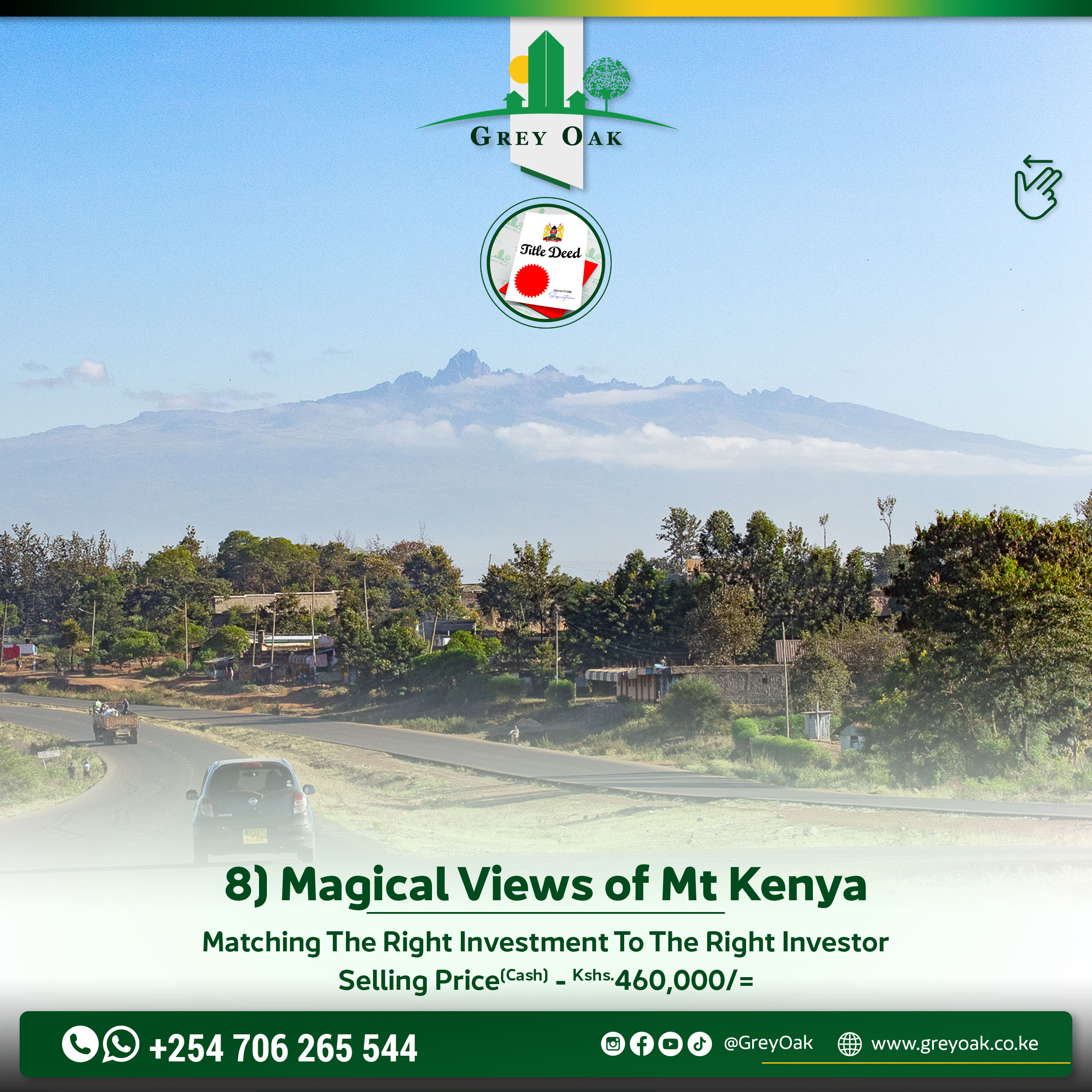 The land is located near the Airstrip and is perfect for those who wish to build a permanent home or even a rental Airbnb for business as tourists are usually flying in and out at the Airstrip. We also have the railway system mode of transport near the area but the most catching description of the place is the breath-taking views of Mount Kenya and the Aberdare Range Hills.