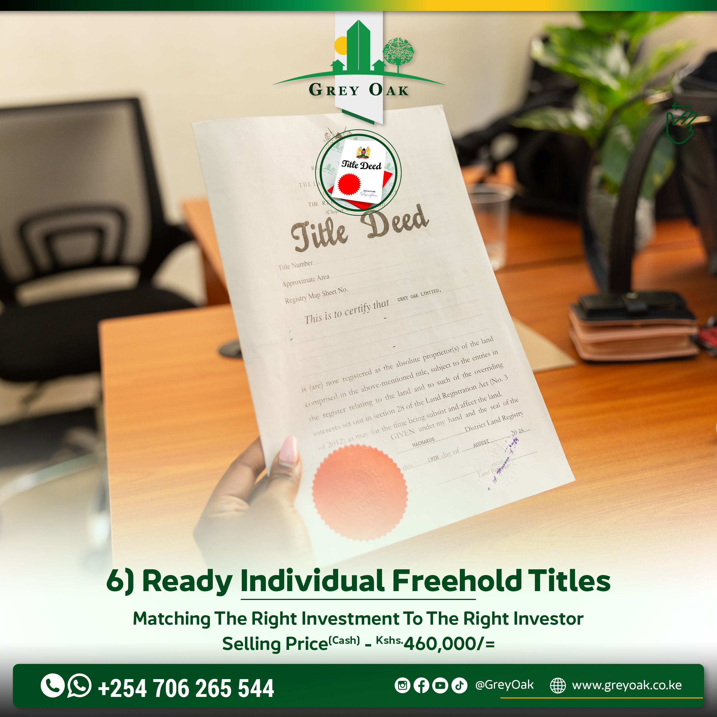 Once you complete your purchase, the title deed takes 21-30 days to be ready after transfer processing.