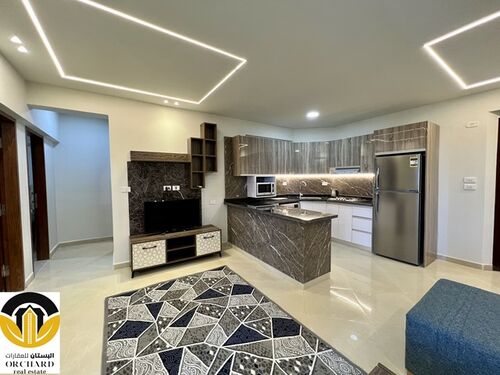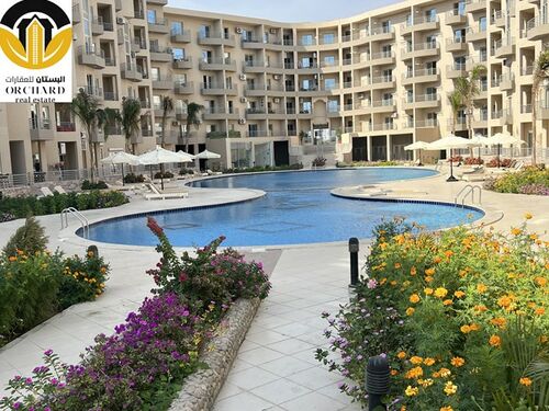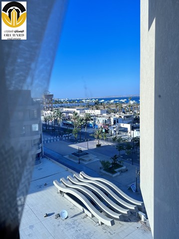 Living area with open plan kitchen leads to the balcony overlooking the Red Sea and swimming pool area, two bedrooms and the bathroom are completing this furnished apartment.