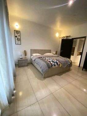 This stylish and contemporary townhouse is located in the bustling center of Accra. It features two spacious bedrooms, both tastefully furnished with modern decor. The property offers a comfortable living space with a fully equipped kitchen, a cozy living room, and dining area. Additionally, residents can enjoy a private swimming pool, providing a perfect retreat within the city. This townhouse is ideal for those seeking a blend of luxury and convenience, with easy access to Accra's amenities and attraction