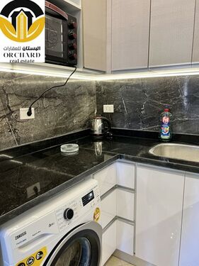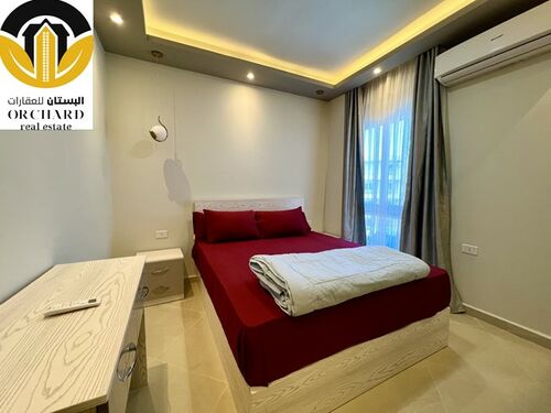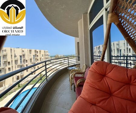 Spacious living area with all amenities and the open plan kitchen (with all appliances and equipment) leads through the sliding doors to the 'half round' balcony overlooking the azure blue Red Sea and swimming pool area, two bedrooms and the bathroom are completing this contemporary furnished apartment.