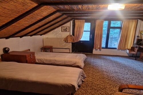 bedroom, toilet and bathroom. Upstairs another large room with balcony