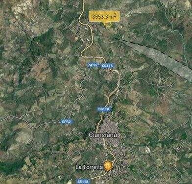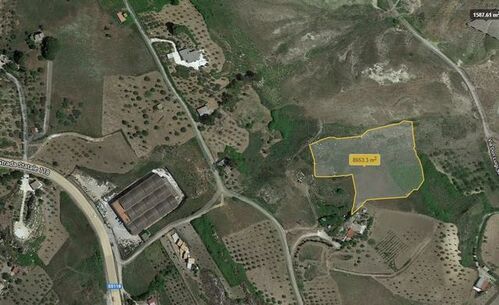 Uncultivated free agricultural land covering an area of approx 8500 sqm, which is accessed by a dirt road.