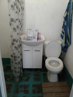 The old outside "organic" toilet has been updated and can be used as a second toilet. There is a very strong and good basement under the annex.