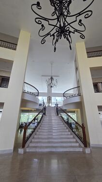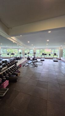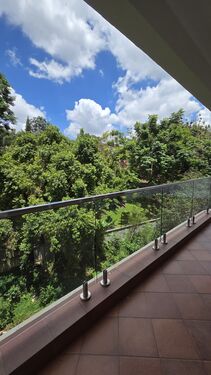 Natural light floods through expansive windows, offering serene views of Karura Forest. The apartment features a cloakroom, dedicated laundry utility area, solar water heating, and reliable borehole and city council water supply, complemented by a full backup generator.