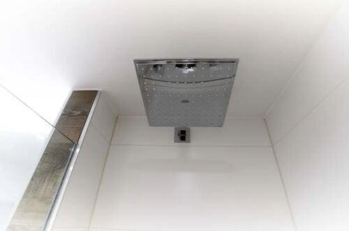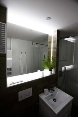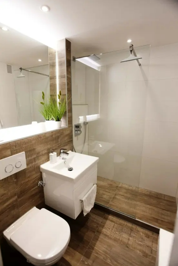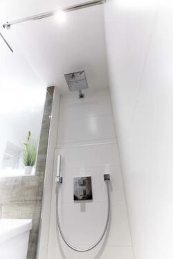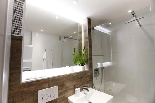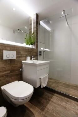 Modernes Badezimmer mit bodengleicher Dusche und hochwertigen Armaturen