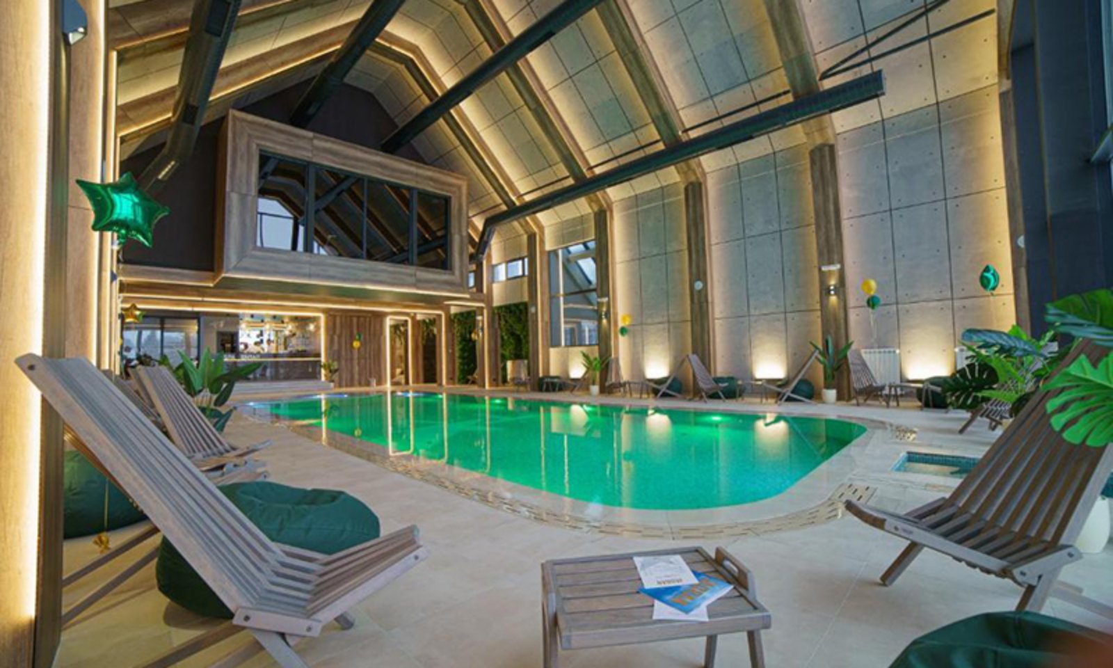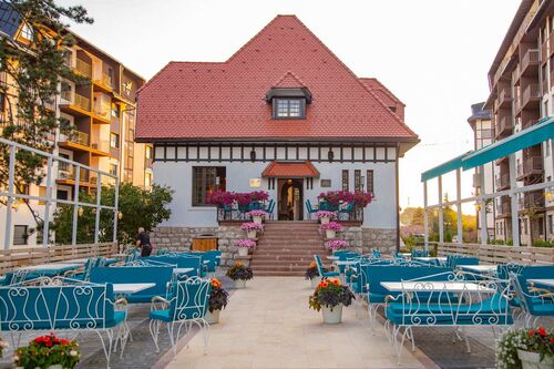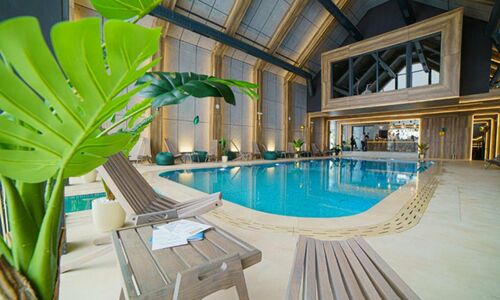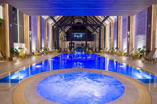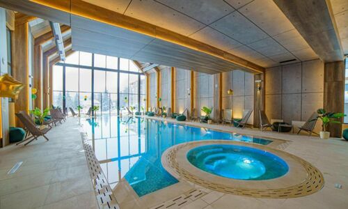 Swimming pool, spa, wellness, children's playground, fitness track, restaurant, free parking.