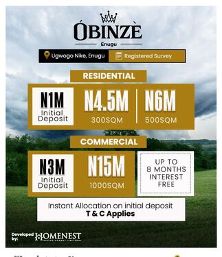 OBINZE ENUGU — A Place for the Elite (BUY AND BUILD LAND WITH INSTANT ALLOCATION ON INITIAL DEPOSIT)