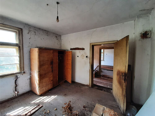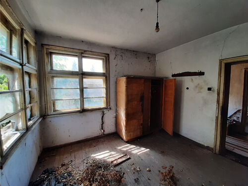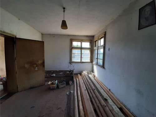 Old country house with garage and plot of land situated in a quiet village near river, forest and hills 35 km northwest of Vratsa, Bulgaria. The property is located in a side street just 3-4 minutes away by foot from the center and is in close proximity to the local school and library. The house has two floors – one above the ground level and another which is almost completely below the ground. The upper part of the house has corridor and three rooms and can be accessed through a wide front door. The underground level has an entrance at the back of the house and during most of the time served as storage area and basement. It comprises of corridor and two very big premises located to the left and to the right. The garage is further into the yard. The property is on a corner and has access from two streets. There are several fruit trees in the garden as well as some vines. The nearest shop and bar are less than 5 minutes away from the house. At the same distance are the center of the village, the local post office and the mayor`s office. The surrounding area of the settlement consists of mixed forest, hills and fields. There is also a river which passes about 2-3 kilometers away from the village thus providing good conditions for fishing, camping and hunting. The property is located halfway between two big cities Vratsa and Montana. Both of them are regional capitals of their respective areas and offer a lot of interesting places to visit, many shops, services and amenities. The nearest town to the property is 12 km away and is the seat of the local council. There one can find doctor and dentist, police station, emergency room, fire department, shops and bars, restaurant, school, kindergarten, train station, etc. There is also a train stop about 5 km away from the house. Old rural property with good location and nice yard looking for new owners.