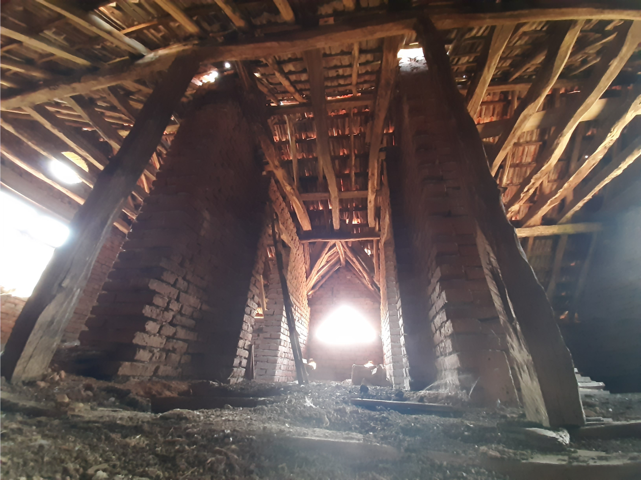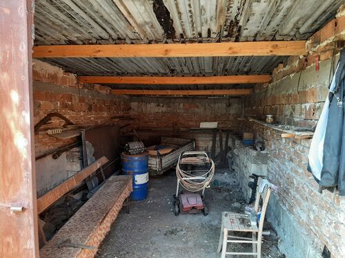 Old rural house with garage and barn located in a village