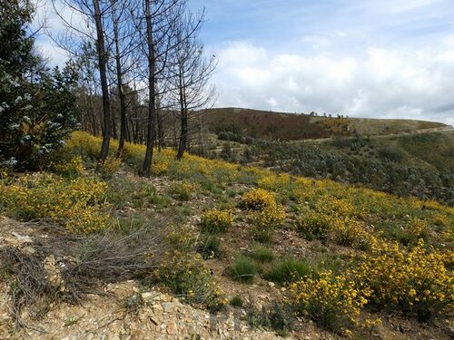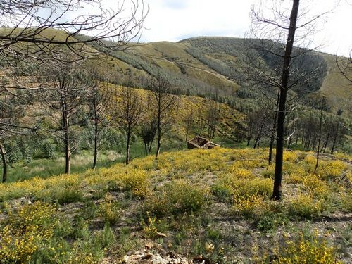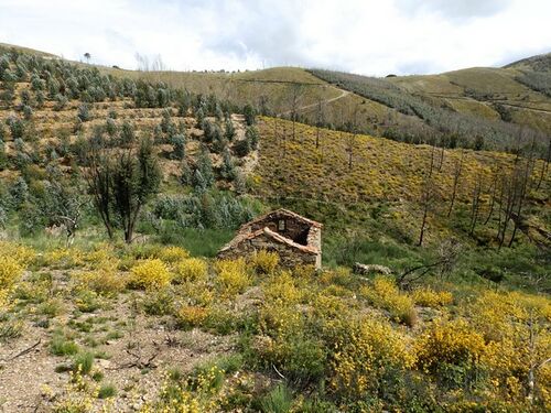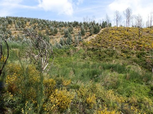 The farm has almost 2 ha and confronts the North with the tarmac road, and has an access on dirt road across the right side of the land and there is a spring at the top. At the bottom there is a small building in schist that can be rebuilt, and has land for cultivation. The area burned there many years, and may be an advantage for those wishing to plant trees of their choice, just as there are many bushes, being safeguarded from the risk of fire for some time.