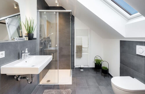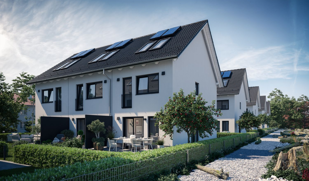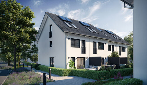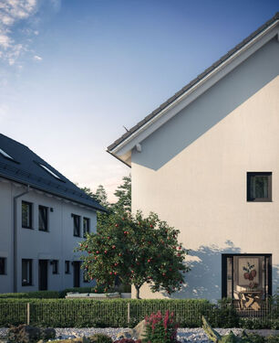 The already completed houses offer enough space for the whole family. On the ground floor, next to the hallway and a guest toilet, there is a spacious living/dining area with access to the sunny garden terrace. The two well-proportioned rooms on the 1st floor can be used as bedrooms or work rooms, and there is also a shower room on this floor. The master area with a separate bathroom is on the top floor. The well-thought-out living concept is completed by a flexibly usable hobby room in the basement.