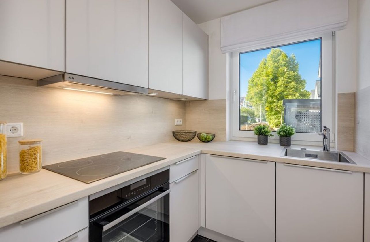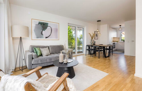 Modern and inviting architecture, light-flooded rooms and high-quality furnishings create a special ambience for a great living experience. The south-facing terrace with a private garden completes the harmonious overall picture and offers an idyllic environment for relaxing and enjoying.