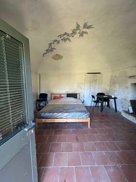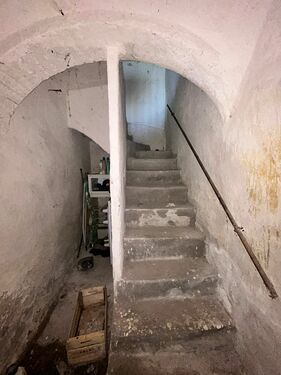 For sale is a portion of a property requiring complete renovation, comprising 5.5 rooms on two floors plus approximately 420 square meters of land.
