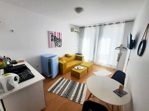 The studio apartment that we offer for sale is situated on the 2nd floor of the complex. It is for sale furnished. The apartment is 25 square meters ,doesn't has a balcony. It is ready to move in or rent out.