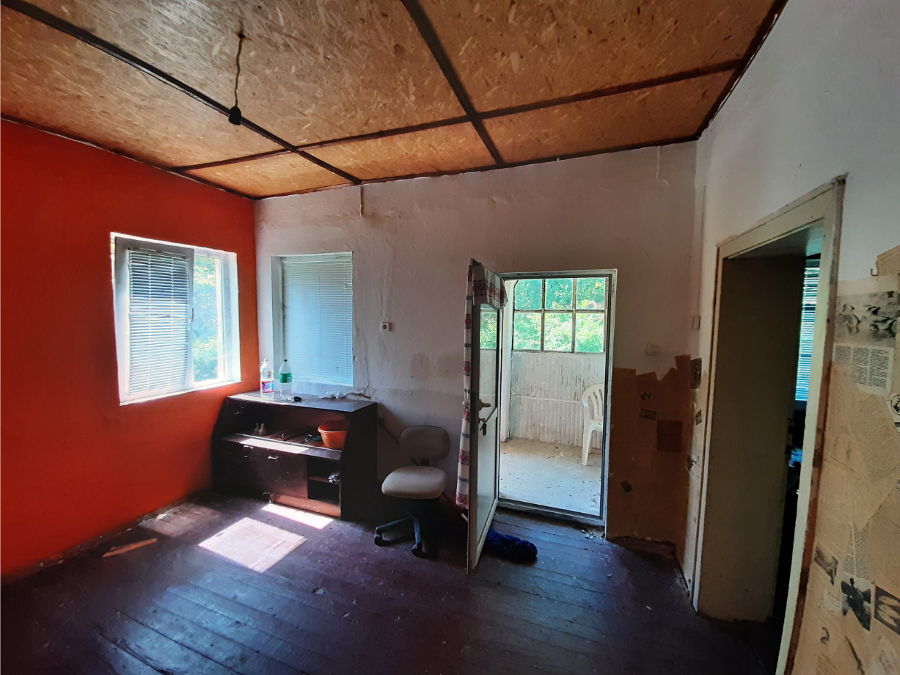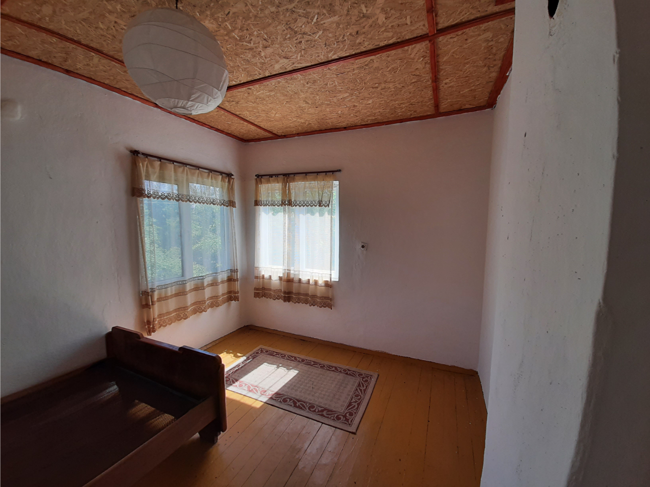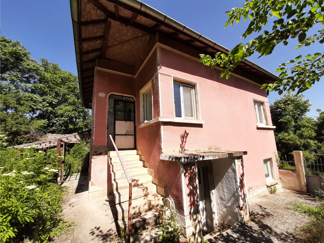 Solid rural house with plot of land in close proximity to forest and hills situated in the outskirts of a village 45 km away from Vratsa, Bulgaria. The property is located in a quiet area bordering the forest. It consists of main building with two floors, old barn and plot of land. The ground floor holds three premises which are designated to become bathroom with toilet, kitchen and living room. There is also a common area which connects all three premises and can be turned into sitting area/lounge. Over the short external staircase one can go to the second floor which has identical layout as downstairs. Here you enter into a very short hallway which brings you to spacious sitting area and from there one can enter into three bedrooms. The house needs some finishing work and renovations but a bit of work had already been done. All windows are new PVC, double-glazed, the roof was repaired several years ago and a bit of interior refurbishing was done on the second floor while downstairs the floors have been leveled and the walls are stripped off of the old plastering and are ready for the new owners to choose the materials and style in order to do the finishing work. A bit of plumbing is also in place as there is water into the premises designated for bathroom and kitchen. A new cesspit had also been built and the house is connected to it. The barn located to the back of the house needs work but the new owners can decide whether to save it or remove it and build something else in its place. The property is situated in a quiet village in proximity to small lake, hills, forest and fields. There are shop, café-bar, post office, mayor`s office and library here. There are two towns within 15-20 minutes of driving from the house. One of the towns is where is the seat of the local council responsible for the administration and rule of the area so that place provides administrative services, hospital, police station, fire station, pharmacies, banks and ATMs, school and kindergarten, cinema, furniture store, grocery stores, supermarkets, farmers`s market, gas stations, etc. The property is located about 40 minutes away from the regional center Vratsa and about two hours away from Sofia and Sofia International Airport. Solid rural house with nice location and lots of potential at a fair price.