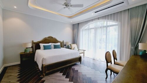 Located at Bai Truong, Duong To commune, Phu Quoc district, only 5 minutes from the airport, Sunset Sanato Resort & Villas is your great vacation destination with more than 110 beachfront resort villas, the resort stands out with its unique design. Modern and sophisticated design, including more than 400 rooms with sea view or garden view, swimming pool, Sunset Sanato Resort & Villas is proud to be an ideal vacation destination for your family, friends and business trips. Rooms and villas are designed in a French country style with a "tropical breath", a harmonious and elegant combination of interior style and color, along with green areas of trees and miniature landscapes. creating a gentle, elegant space for customers to comfortably stay.