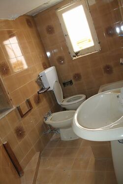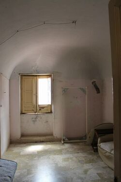 A two storey townhouse constructed using masonary. The property covers an area of approx 110 sq meters per floor for a total of approx 220 sq meters. The ground floor is for use as a storeage room in rustic style for of approx 100 sqm , and an autonomous room with bathroom of approx 15 sqm which is refurbished. On the first floor there are five rooms and bathrooms and a utilty room.