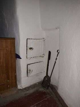 There is a traditional stove in the kitchen area which has been used to supply heat to the house as well as for cooking.
