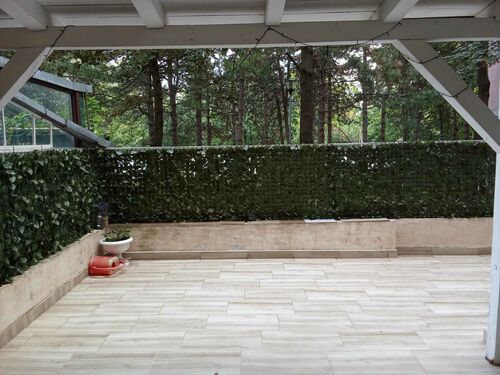 Two exits from rooms to terrace, from which there is an exit by steps to garden lawn on the ground level. The terrace is walled 50cm and fenced 100 cm up.